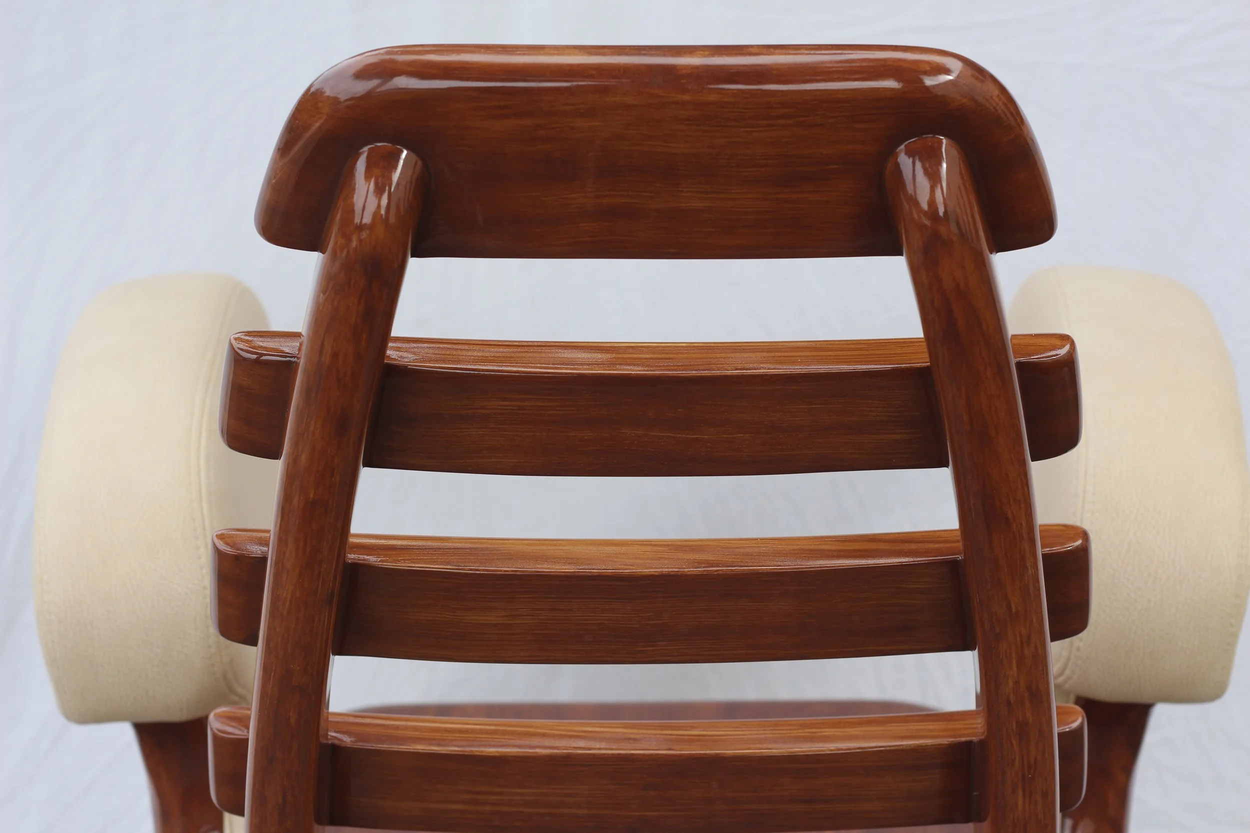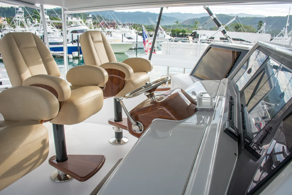These custom carbon helm chairs were built for a 90' Jarrett Bay Boatworks custom sportfish. Touted as "the most advanced sportfish ever built," she cruises at 38kts, and GMT had to perform a number of tests to ensure ABYC standards were met. It felt a little like an episode of Mythbusters, dropping 400lb sand bags onto these carbon chairs from a few feet high - but don't worry, we performed the test before the beautiful Faux Bois finish was painted on.