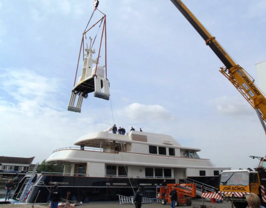 GMT was contracted to build a custom carbon arch to house the electronics for this 140' Holland Jachtbouw built yacht Calliope. The designer, Langan Design Partners - Newport, RI, approached GMT for this unique solution to not only provide an aesthetically pleasing support structure, but also because using carbon reduced a huge amount of weight high above the waterline. Saving over 1,000 lbs enabled the builder to avoid adding tons of weight in the bilge to meet stability requirements. The significant overall weight savings meant the yacht would float higher in the water, making her more fuel efficient.